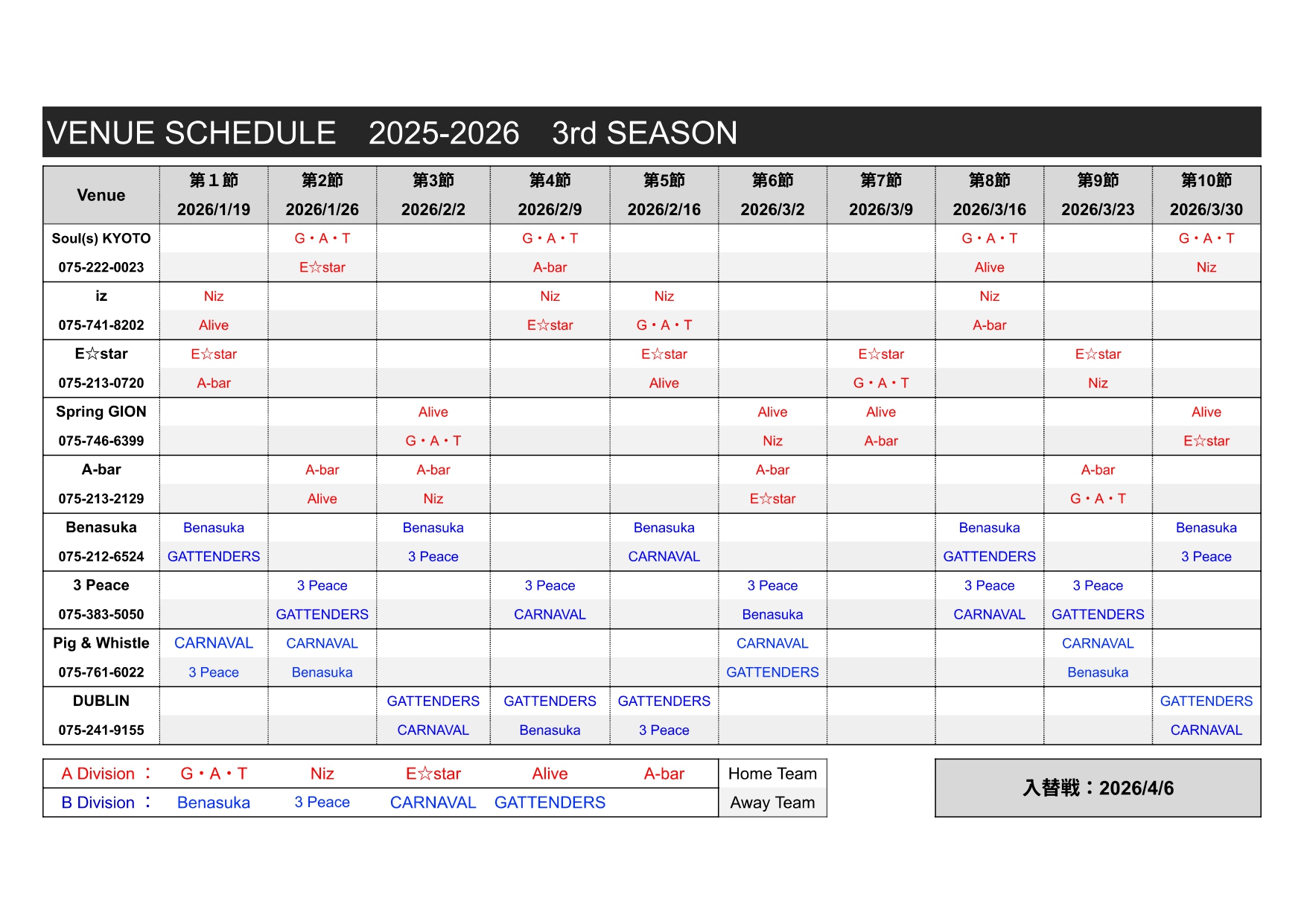 | <2025年度 3rdSeason スケジュール> | |